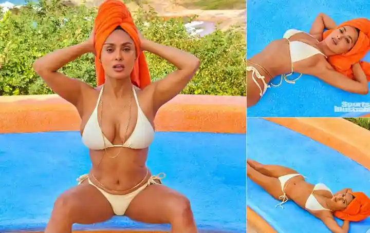 Salma Hayek shakes her perky buns in tight reveling bik!ni…Gif